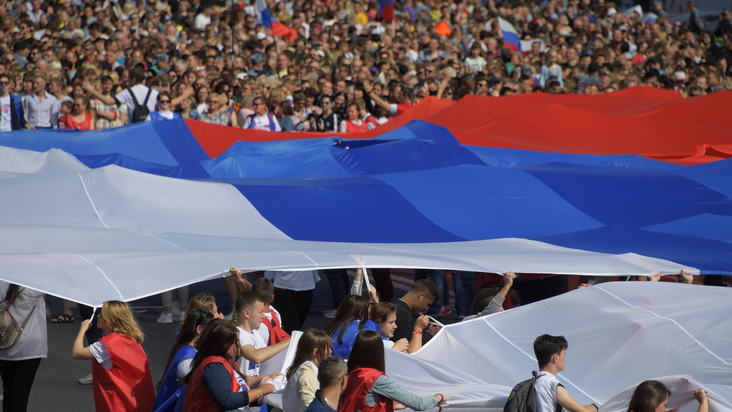 Праздничное мероприятие началось с флешмоба «Флаг-рекордсмен»: студенты, волонтеры и представители молодежных объединений развернули полотно, составленное из двух тысяч флагов российских регионов и общественных организаций. На нем также присутствовало слово «Россия», сложенное из цветов триколора.